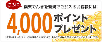 楽天でんきは申込みすると、ポイントが3000ポイント入り、