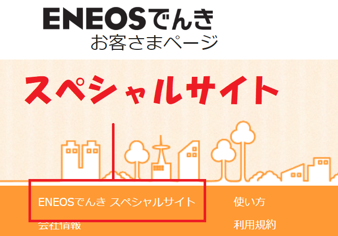 ENEOSでんきのスペシャルサイトは、お客様ページの下にリンクが貼ってあります。